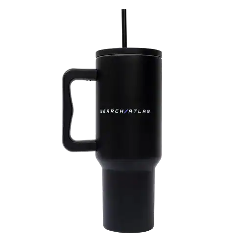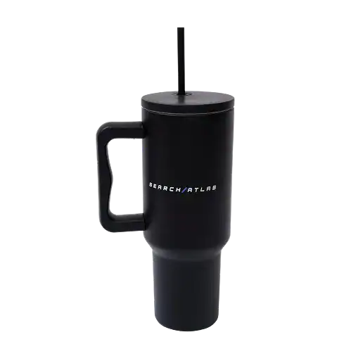 insulated Stanley-style tumbler features the iconic Search Atlas logo with holographic star print